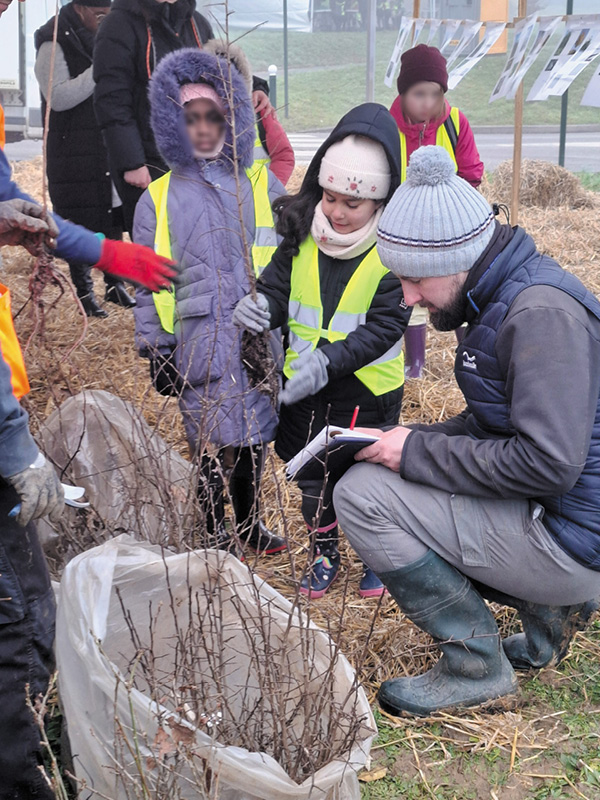 Pour cette première séance de plantation, une quarantaine d’élèves de CP-CE1 de l’école élémentaire de la Louvière, accompagnés de leurs maitresses et de parents, sont accueillis par le groupe de pilotage de la ville et par les équipes du service environnement. A tour de rôle, une partie des enfants va planter son arbre, tandis que l’autre participera à des ateliers autour de la nature, mixant lecture d’un conte ou dessin d’observation. Prunelier, Merisier, Chêne, Hêtre, Saule, Mélèze, Pommier… : après une explication des méthodes de plantation et une présentation générale des arbres, les agents du service environnement remettent à chaque élève une espèce différente. Ces dernières ont été sélectionnées et préparées en amont par les équipes de la ville. « Retenez bien le nom de votre arbre, on en reparlera en classe », prévient Valérie la maitresse tandis que les enfants s’attellent à la plantation.